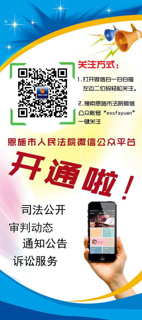 4月30日,恩施市人民法院官方微信公众平台正式开通并上线运营,这是市法院继开通官方微博后,不断创新司法公开手段,加大司法公开力度,拓宽与群众互动及加强社会监督的又一举措。